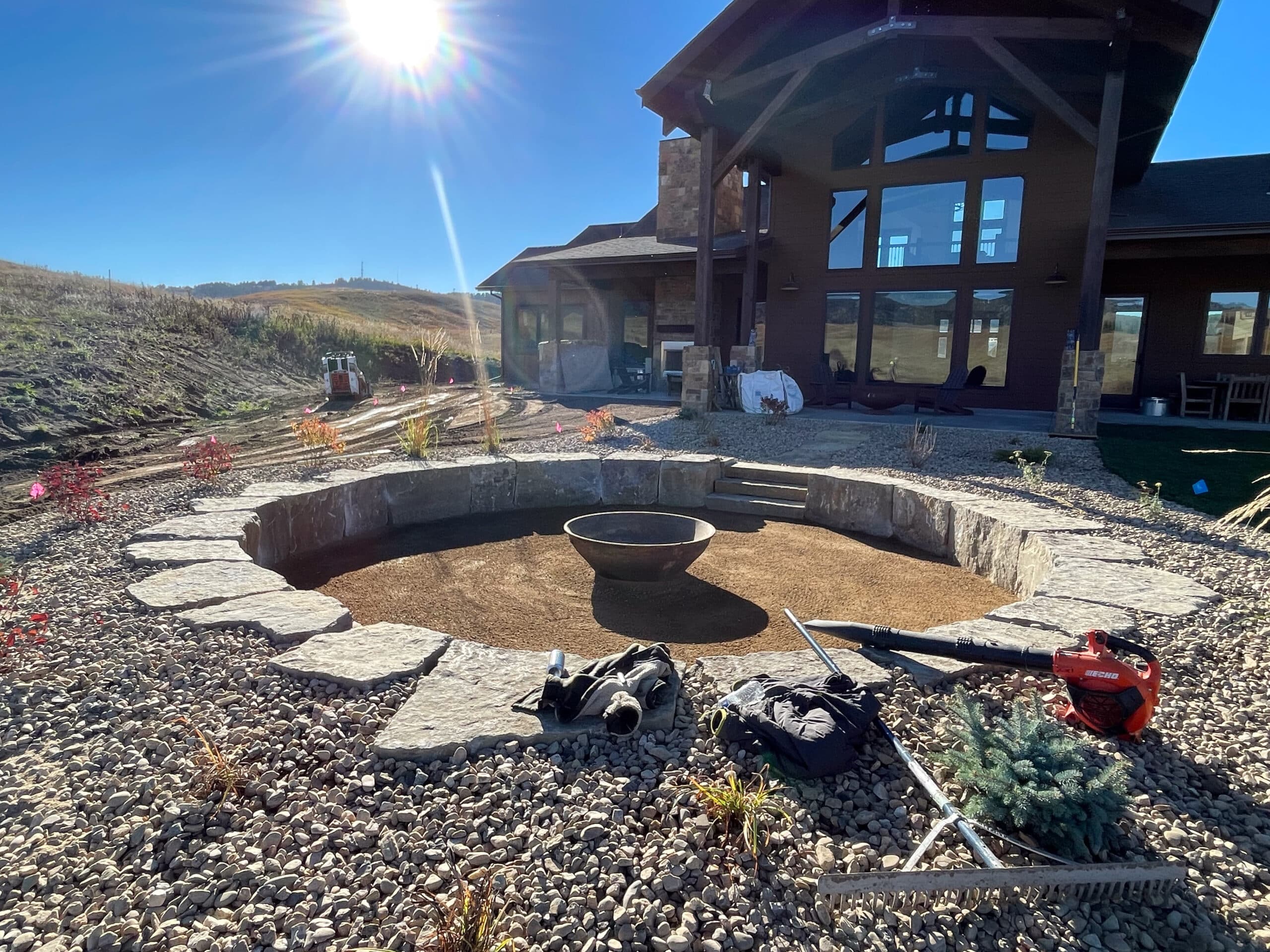 Custom Backyard Firepit and Sod Installation